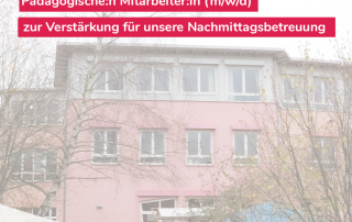 zur Verstärkung für unsere Nachmittagsbetreuung in den Klassen 1 bis 8 von Montag bis Freitag in der Zeit von 13:00 bis 15:00 Uhr.