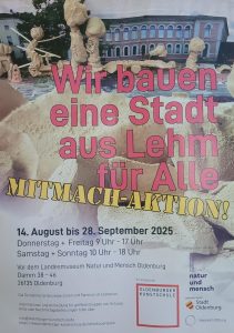 Unsere 3. Klasse hat zweimal die Lehmbaustelle der Kunstschule Oldenburg zum Thema „Wir bauen eine Stadt aus Lehm“ besucht und sich mit viel Elan und Freude am Bau der unterschiedlichen Lehmhäuser vor dem „Museum für Mensch und Natur“ beteiligt. Egal ob im Nieselregen oder Sonnenschein, es hat allen Kindern viel Spaß gemacht und uns schon einen guten Einlick in unsere Hausbau-Epoche vor den Sommerferien gegeben.