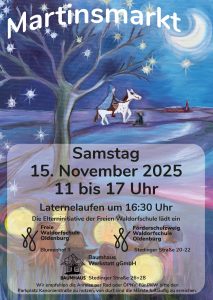 Im Herbst ist es wieder soweit: unser Förderschulzweig und die Freie Waldorfschule Oldenburg öffnen am Samstag, den 15. November 2025, von 11:00 bis 17:00 Uhr ihre Tore für den traditionellen Martinsmarkt. Besucher:innen erwartet ein vielfältiges Angebot an handgefertigten Produkten, kulinarischen Köstlichkeiten und tollen Mitmach- und Bastelaktionen für Klein und Groß.